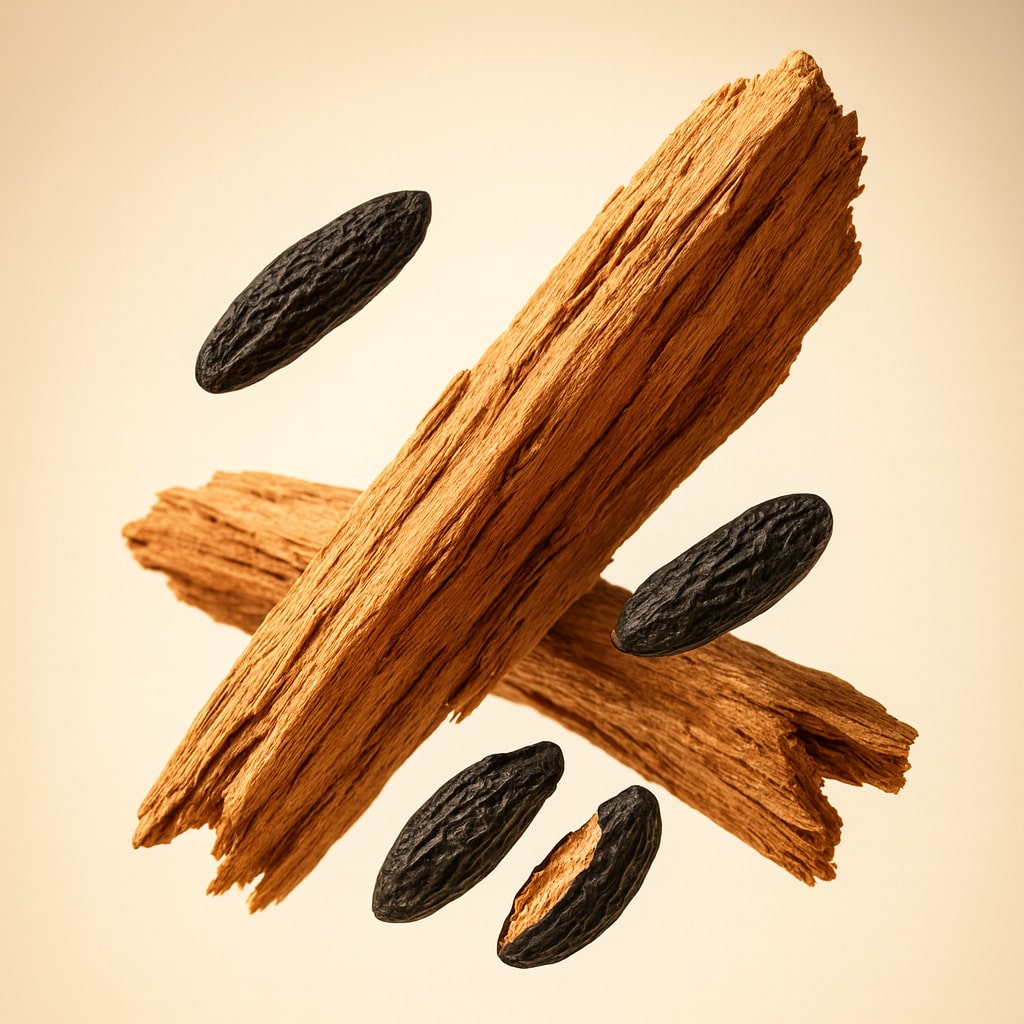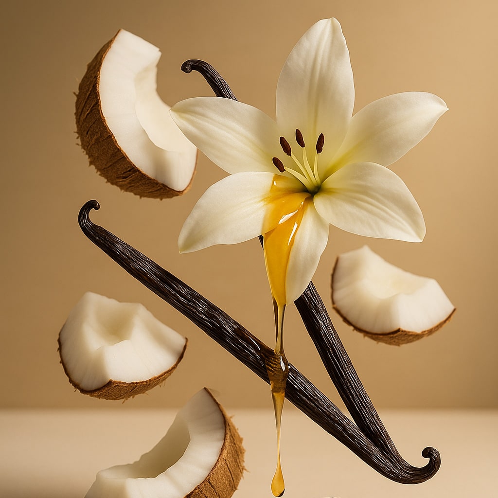 Des notes d'amande et légèrement boisées viennent soutenir la vanille pour la rendre plus profonde et sensuelle.